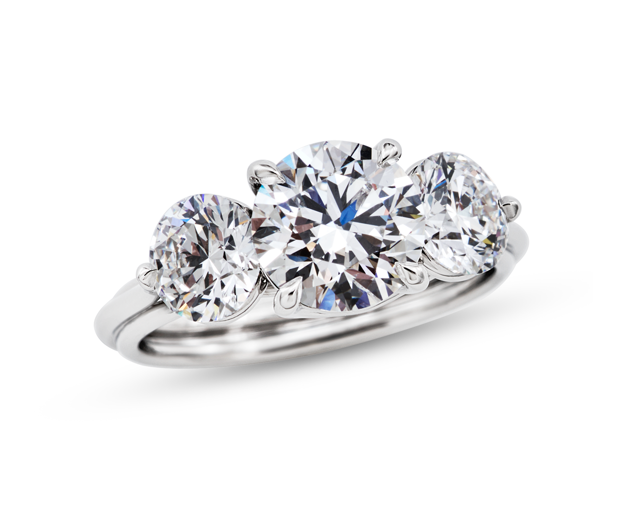 A Round Three Stone Trilogy Engagement Ring With A Trellis Profile Victor Canera