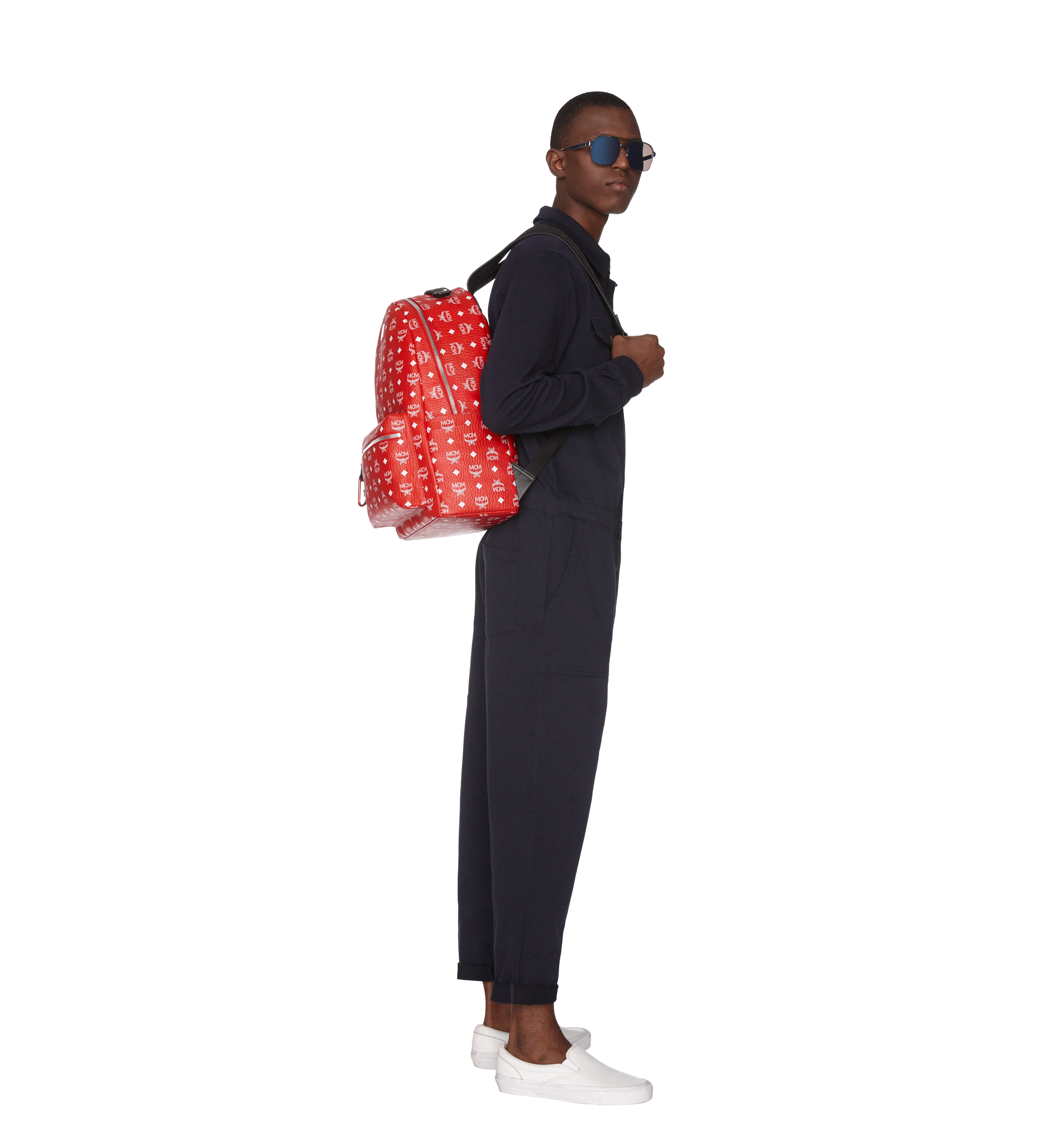 47 Cm 18 5 In Stark Backpack In White Logo Visetos Red Mcm Cz